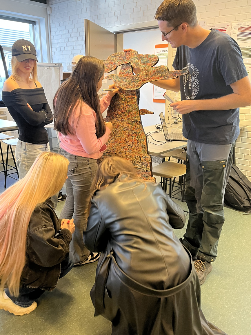 Udvalgte elever fra linjerne Musik, Kunst og Kreativitet samt Kommunikation og Medier besøgte kunstner Julie Nymanns udstilling ”Vi er framtidens stæmmer”. Julie fremhæver, at personer med dysleksi skal anerkendes og høres som en vigtig del af fremtiden. Med sin grønne installation udfordrer hun den røde farvekodning i den nationale ordblindetest og ønsker at nytænke de stigmaer og fordomme, ordblinde ofte møder.