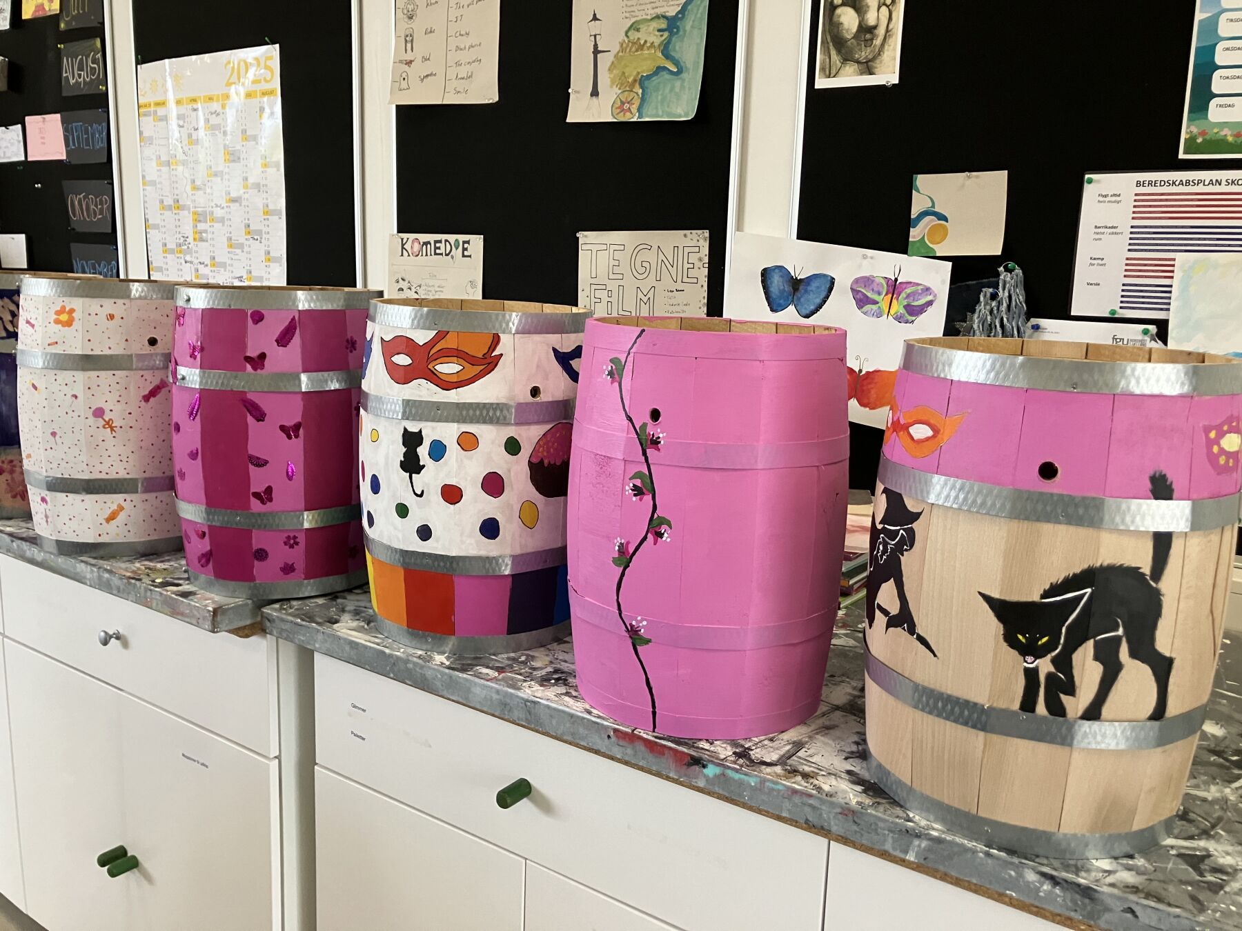 På værkstederne er mellem 70 og 90% af de materialer, vi arbejder med, fra genbrug. Vi laver ting, der kan bruges til noget, som for eksempel tasker, indkøbsnet, upcycling af møbler, upcycling af tøj, kasser af genbrugsmaterialer, spil, årstidspynt...